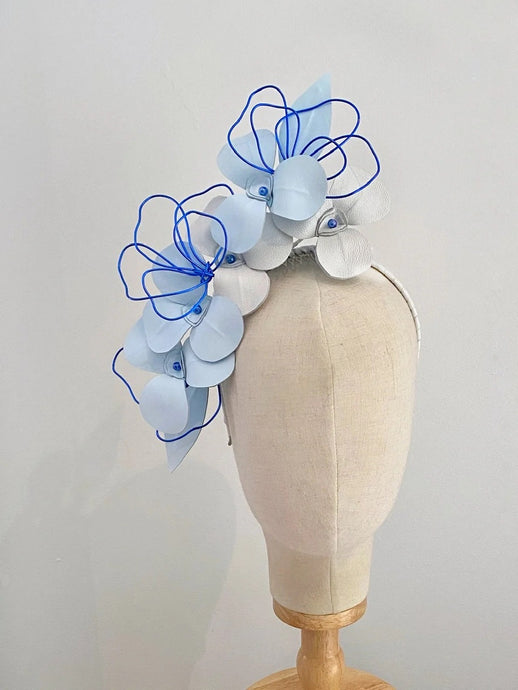 Rayna band headpiece - white with deep bright blue